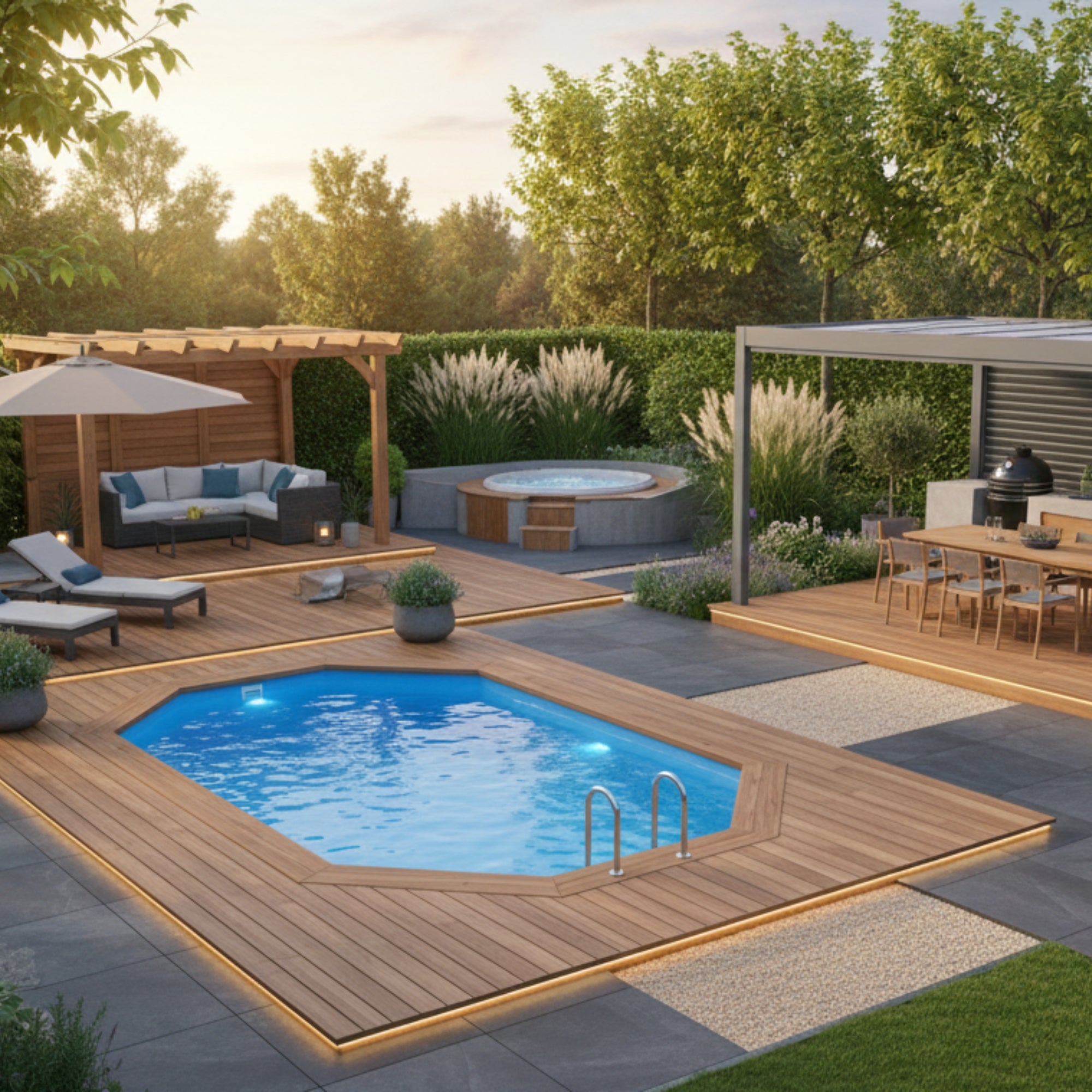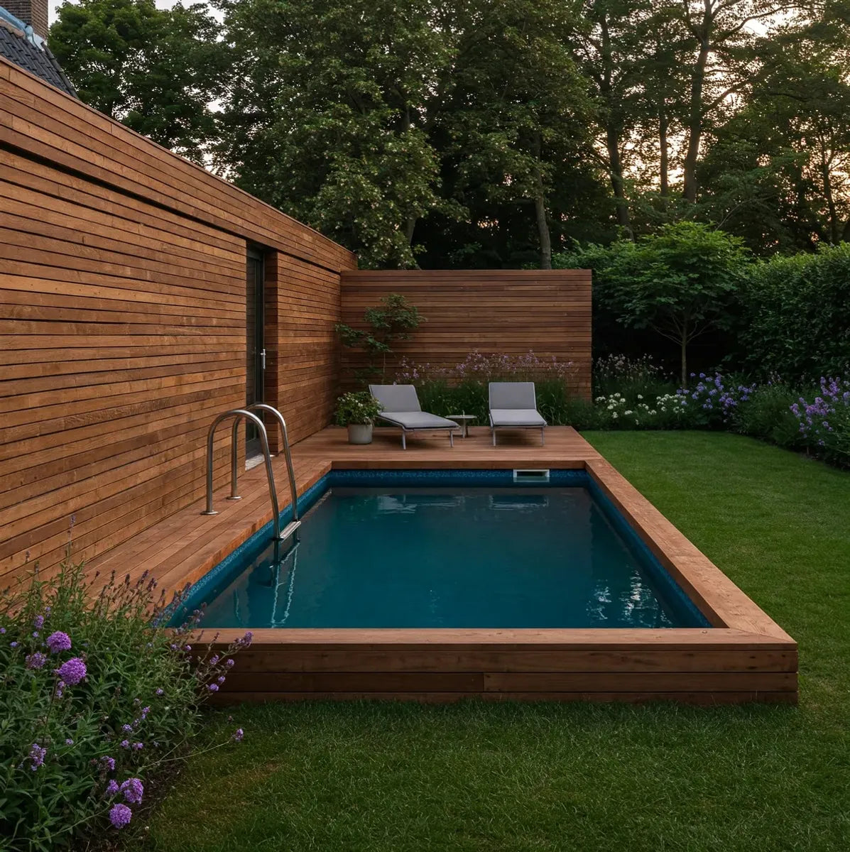 Dit zwembad wordt volledig in de grond verzonken. Het resulteert in een luxueuze uitstraling die vergelijkbaar is met een maatwerkzwembad, maar zonder de noodzaak van een bouwvergunning in veel situaties (controleer lokale regels).
