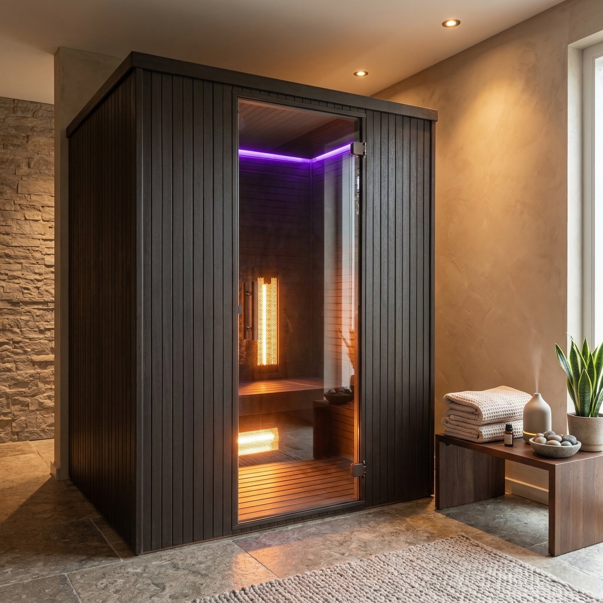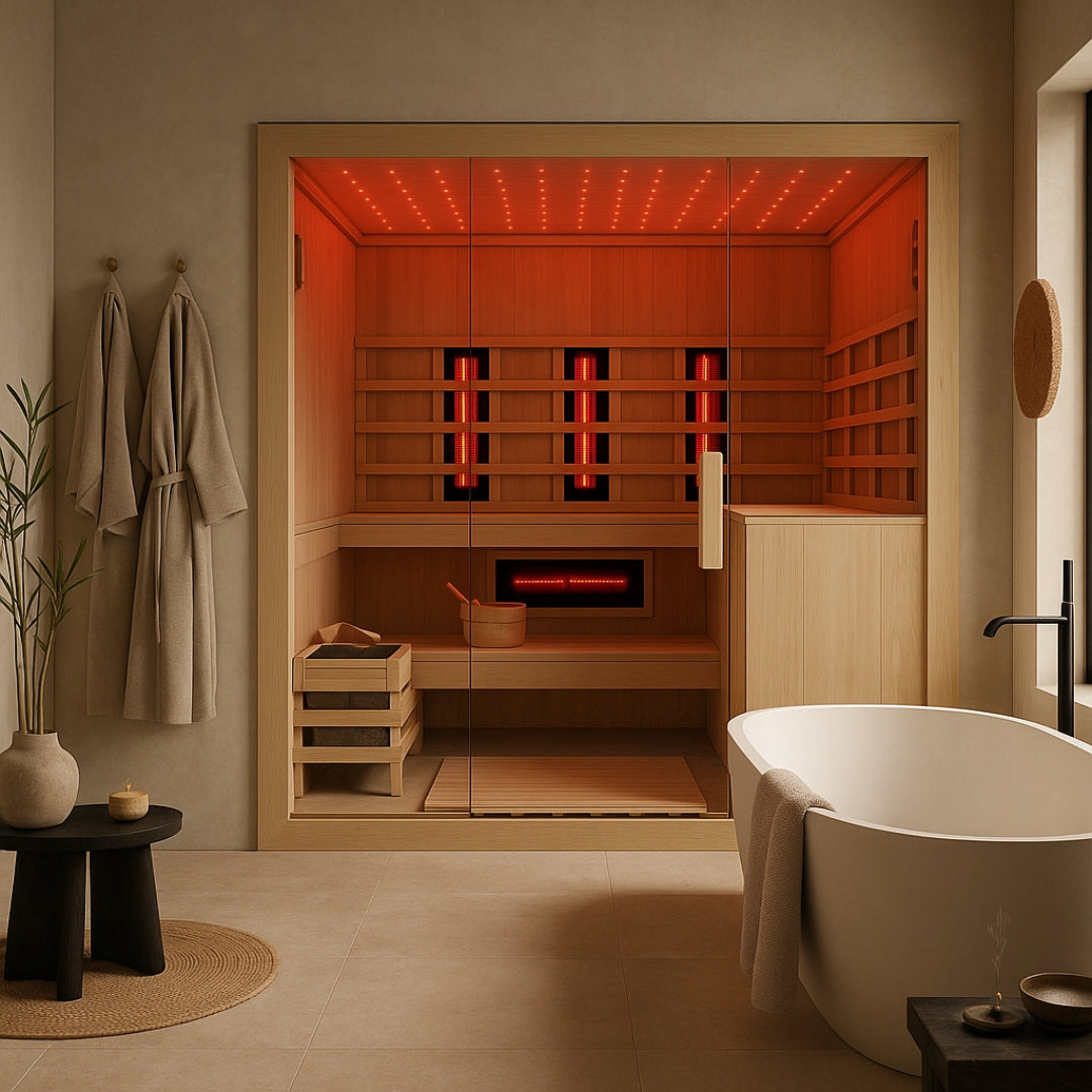 - Combi sauna – traditionele warmte én infrarood in één cabine.